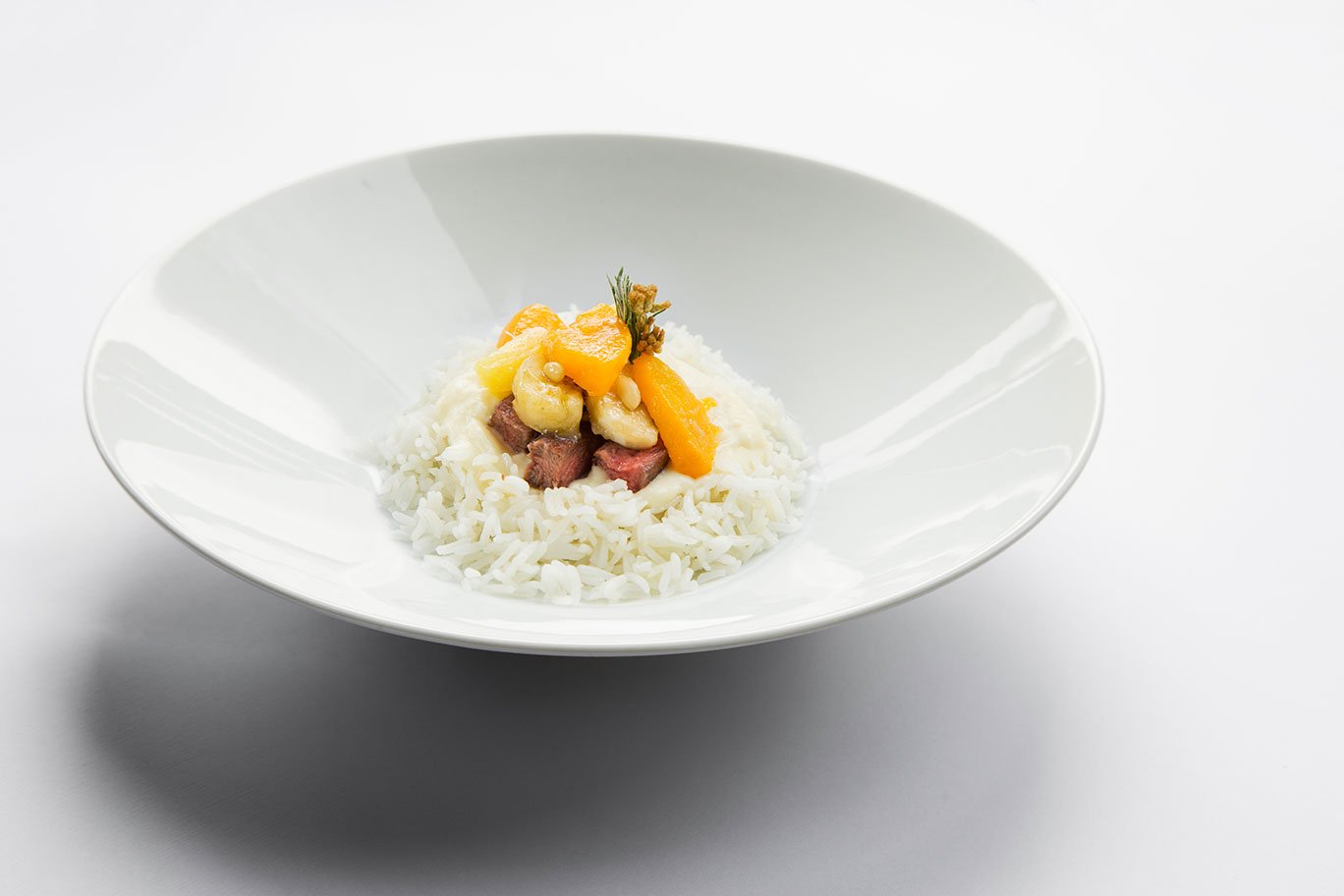ТЕЛЯТИНА С ПЕРСИКАМИ, БАНАНОМ И АНАНАСОМ